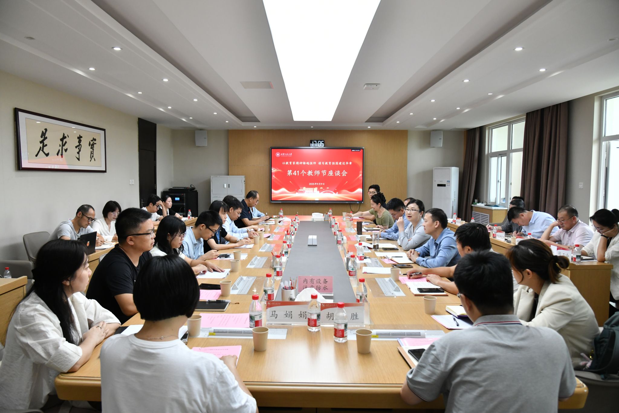 9月9日下午,beat365官网在临潼校区第三会议室召开庆祝第41个教师节座谈会。校党委副书记井浩,副校长夏蔡娟、张洛红出席会议,各学院(部)教师代表及相关职能部门负责人参加了座谈会。会议由井浩主持。