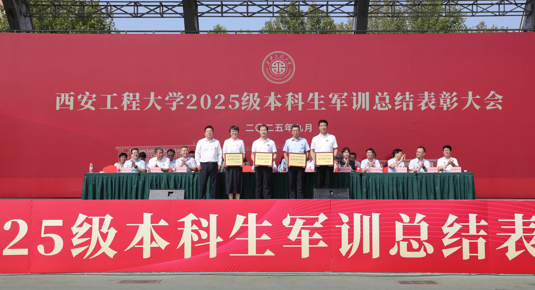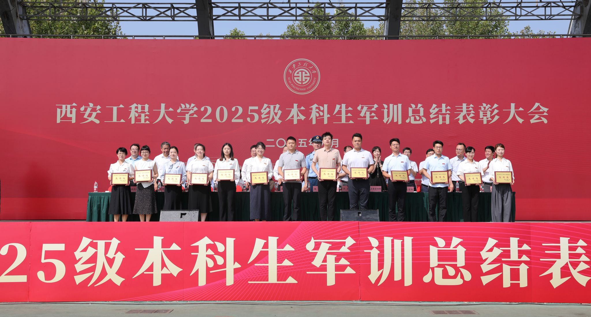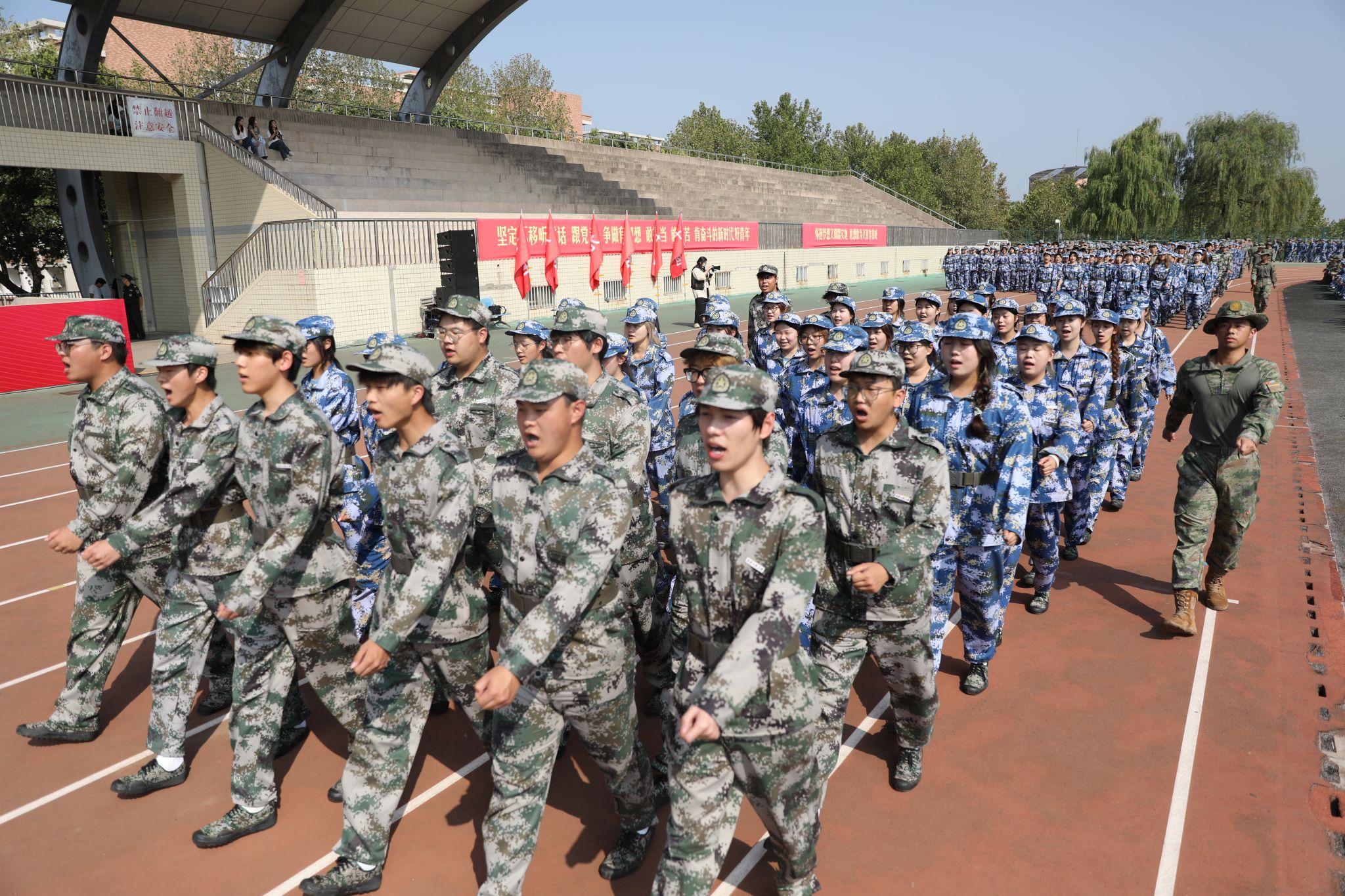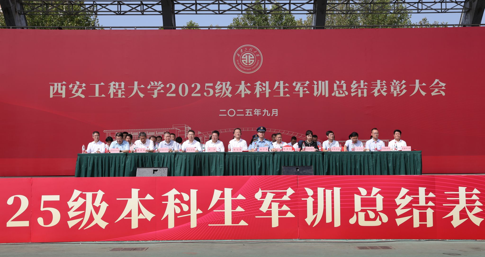 9月14日,beat365官网在临潼校区骊风体育场举行2025级新生军训总结表彰大会。校党委书记张志昌、校党委副书记井浩、副校长张洛红出席表彰大会。校国防教育暨学生军训领导小组各成员单位负责人、各学院党委书记、军训旅各团政委、军训办公室成员、全体承训教官、军训辅导员和4083名本科新生参加大会。