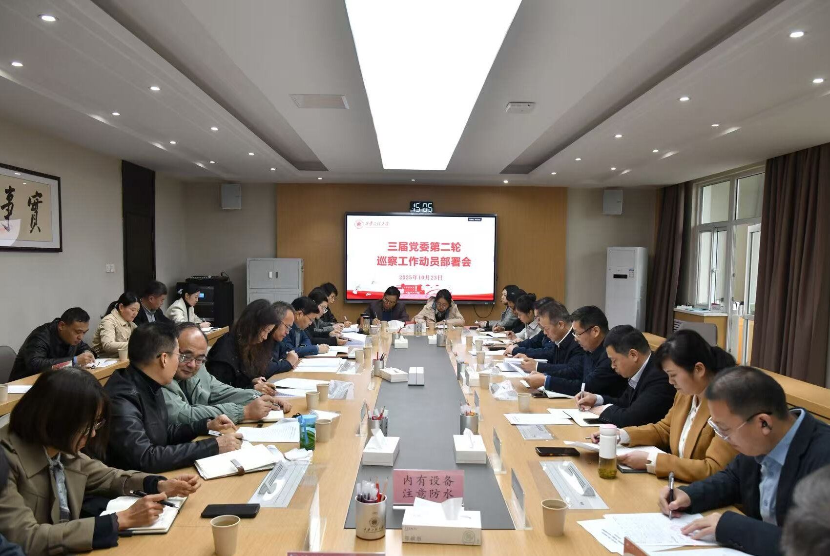会上,辛永昌宣读《关于第三届党委第二轮巡察工作授权任职及任务的决定》;党委巡察办主任郭欣欣解读《中共beat365体育官网平台委员会第三届党委第二轮巡察工作方案》;校党委巡察组组长杨森代表巡察组表态发言。